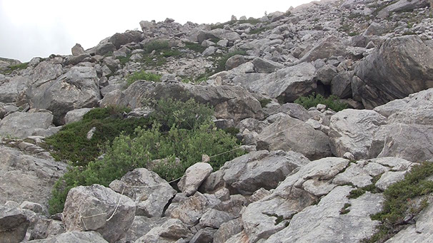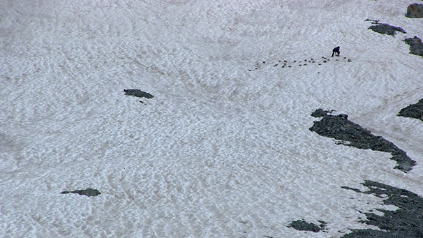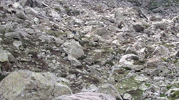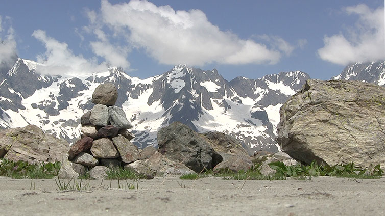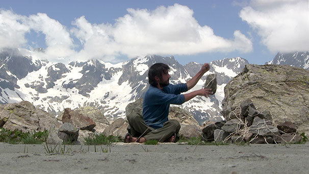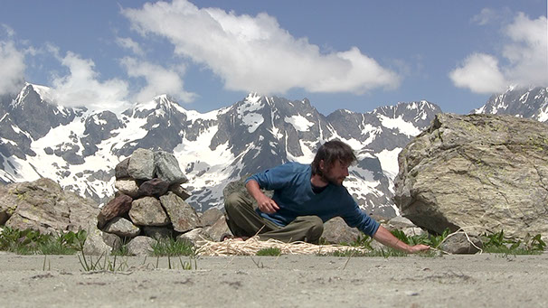 _ Partant d’un cairn et d’une longueur de ficelle comme un vocabulaire minimal, Trente-deux pierres formule des gestes qui se répondent les uns les autres. Gestes non prémédités, suscités par des espaces singuliers, qui détournent le cairn, le déplacent et le réinventent de lieux en lieux pour en faire, au-delà de sa fonction de marquage, une chambre d’échos dans laquelle résonnent et s’entrecroisent de multiples rapports aux montagnes.