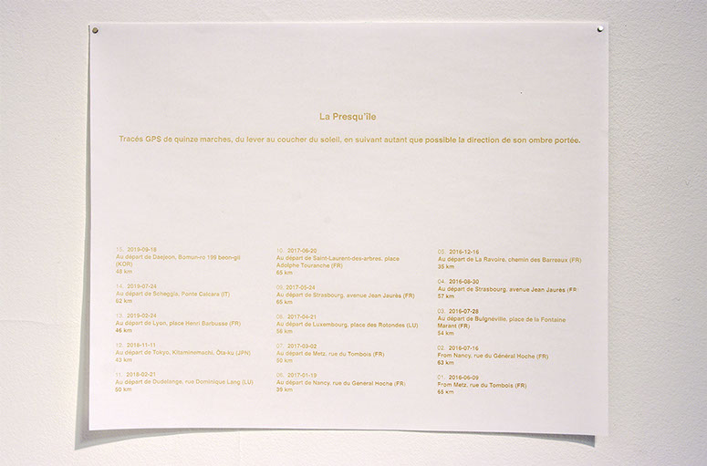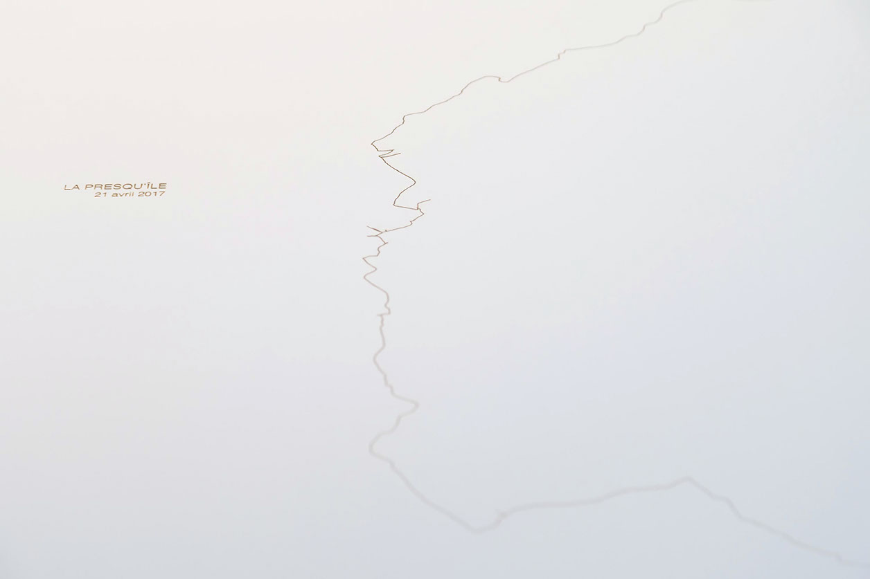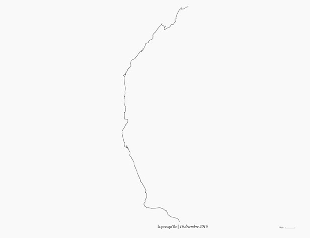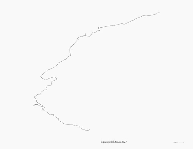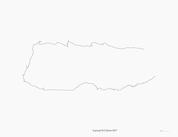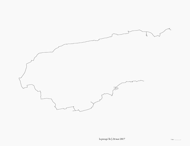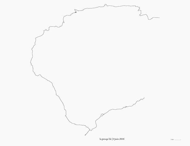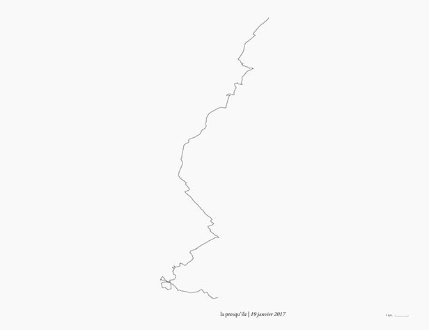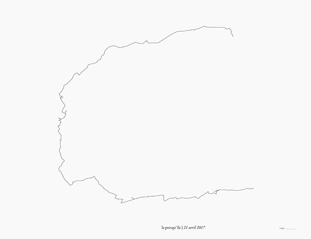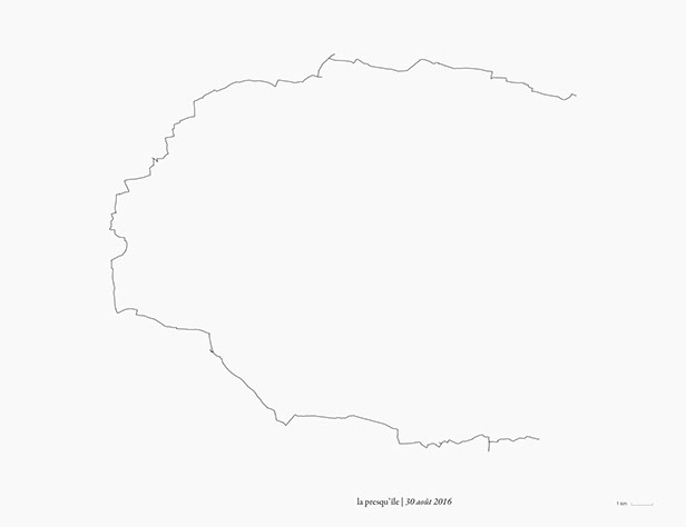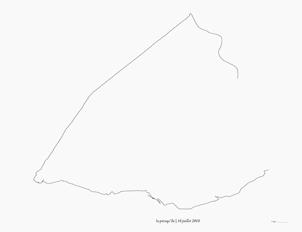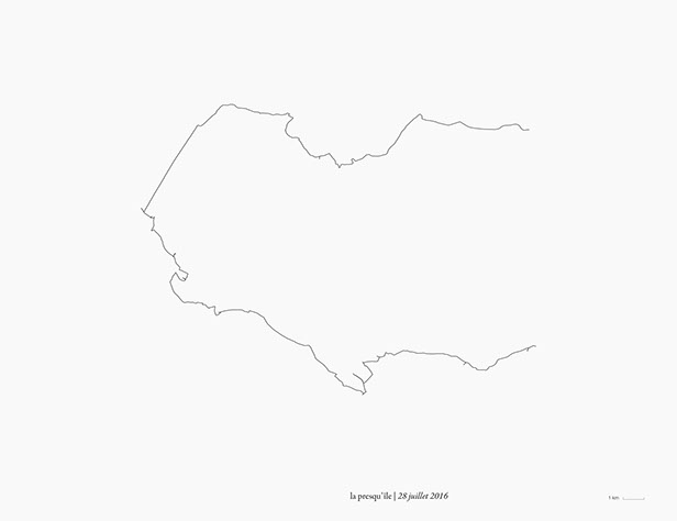 _ La presqu’île consiste en des marches, du lever au coucher du soleil, en suivant autant que possible la direction de mon ombre portée.