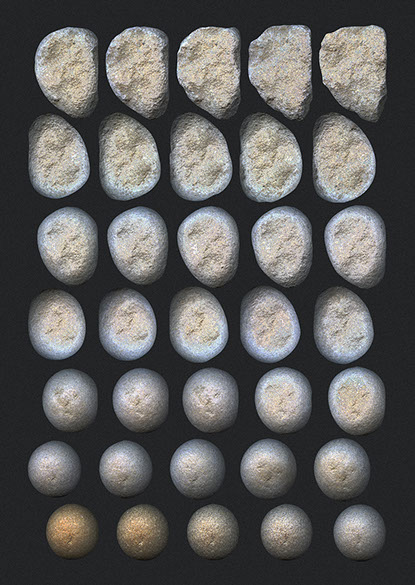 agencement de pierres usées/sculptées à la main