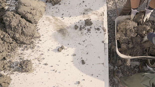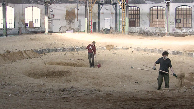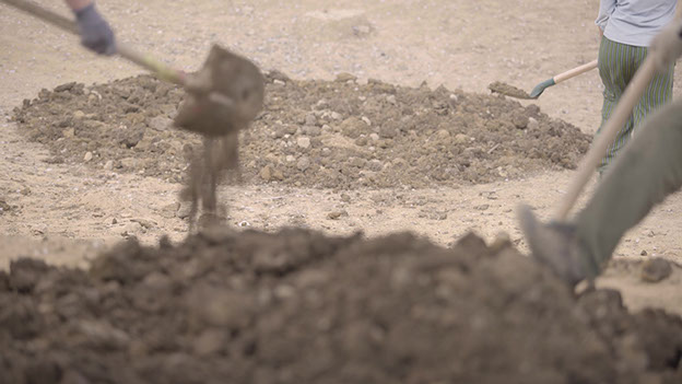 Terre ferme est un chantier qui prend part en douceur au manège colossal des matières dans lequel se planifie, s’essaye et s’emporte la planète à coups de « couper-coller ». C’est un chantier qui avance à rebours, en résistance, et qui vise en somme à « désartificialiser » un sol. Un chantier à l’échelle du corps, attentif aux mouvements de terre et aux gestes, à ce qu’ils produisent et ébranlent.